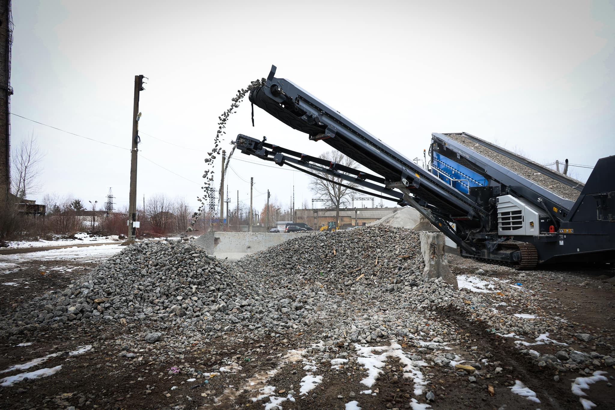 На спеціальному майданчику в Бородянці здійснюється переробка будівельних відходів: бетону, цегли, кераміки та інших матеріалів.
