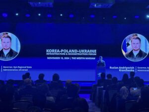 Про потреби Київщини начальник Київської ОВА Руслан Кравченко розповів під час міжнародного форуму Корея-Польща-Україна Інфраструктура та відбудова. Ці питання він також обговорив під час зустрічей із заступником міністра земельних ресурсів та інфраструктури Хюн Хван Джином, новопризначеним керівником корейської організації KIND Кімом Букхваном.