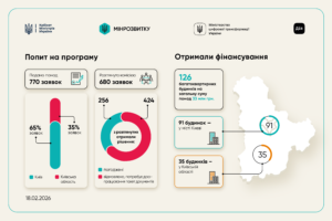 Станом на 18 лютого фінансування вже отримали 126 багатоквартирних будинків на загальну суму понад 33 млн грн. Із них: