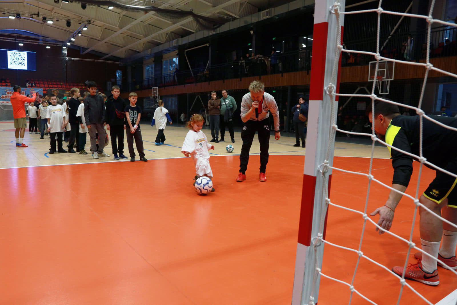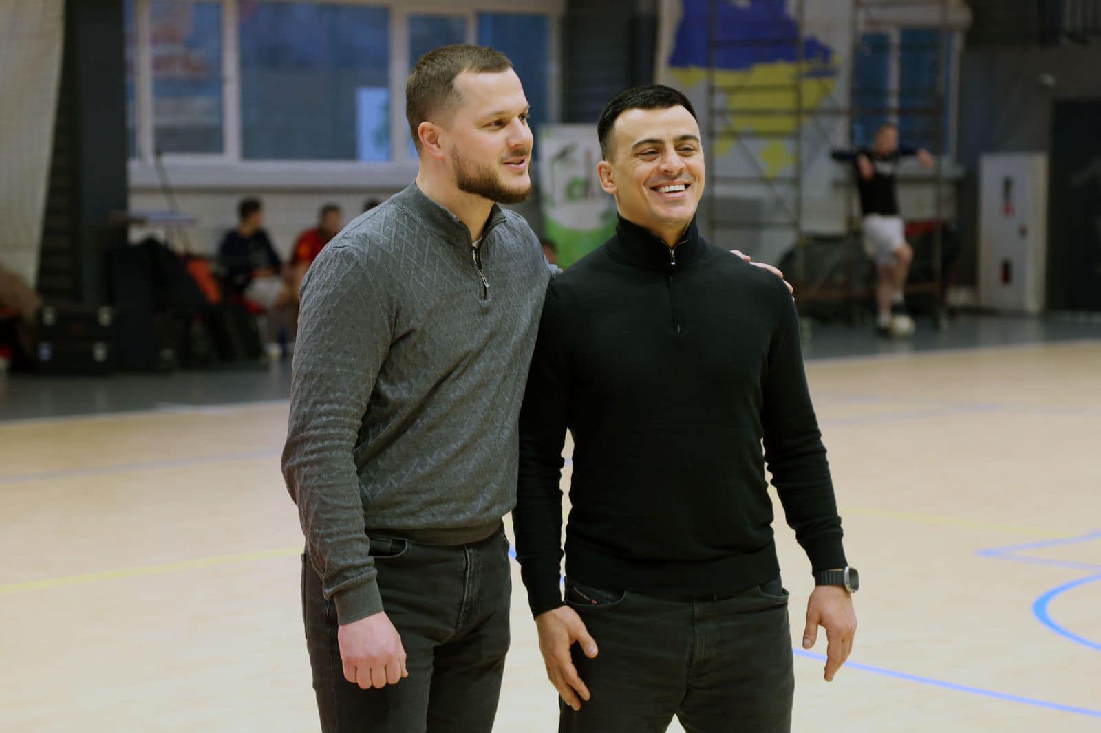 У новому спортивному залі відбулися матчі з футзалу, у яких взяли участь збірні команди блогерів, шоубізнесу, військових та гостомельська команда «Мрія».